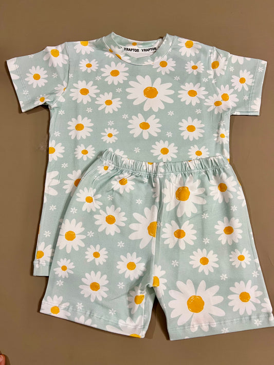 Conjunto Short Y Remera Margaritas Celeste