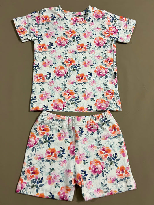 Conjunto Short Y Remera Flores Salmon